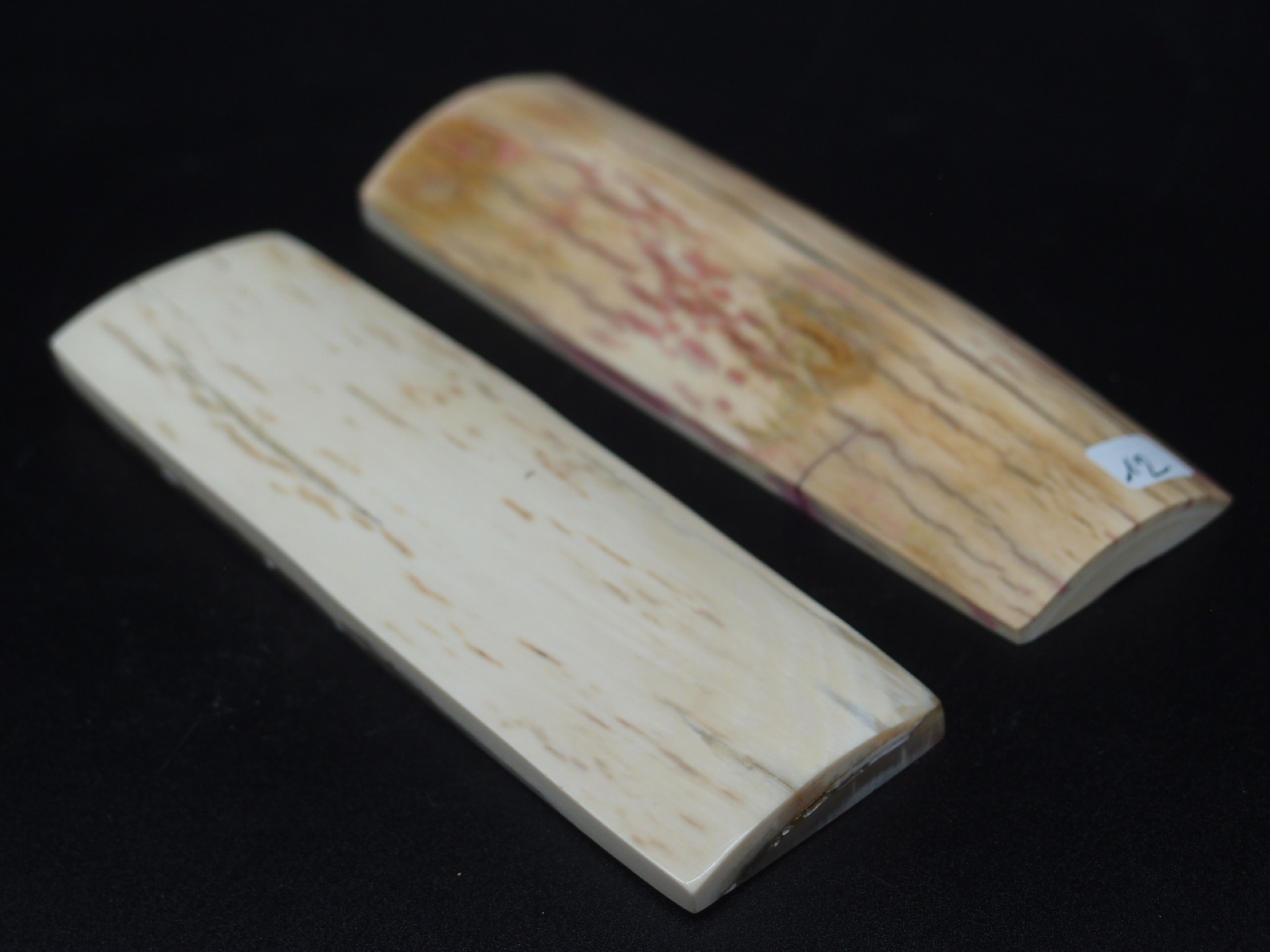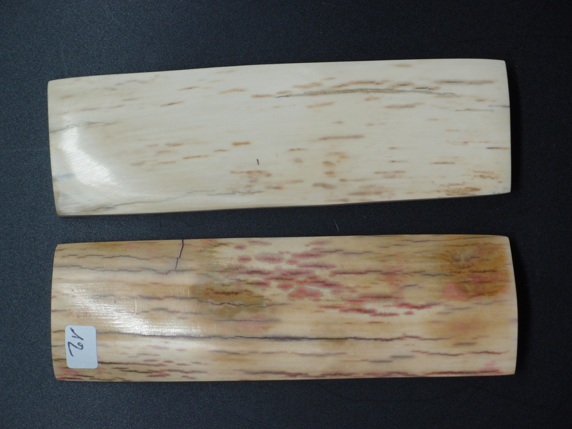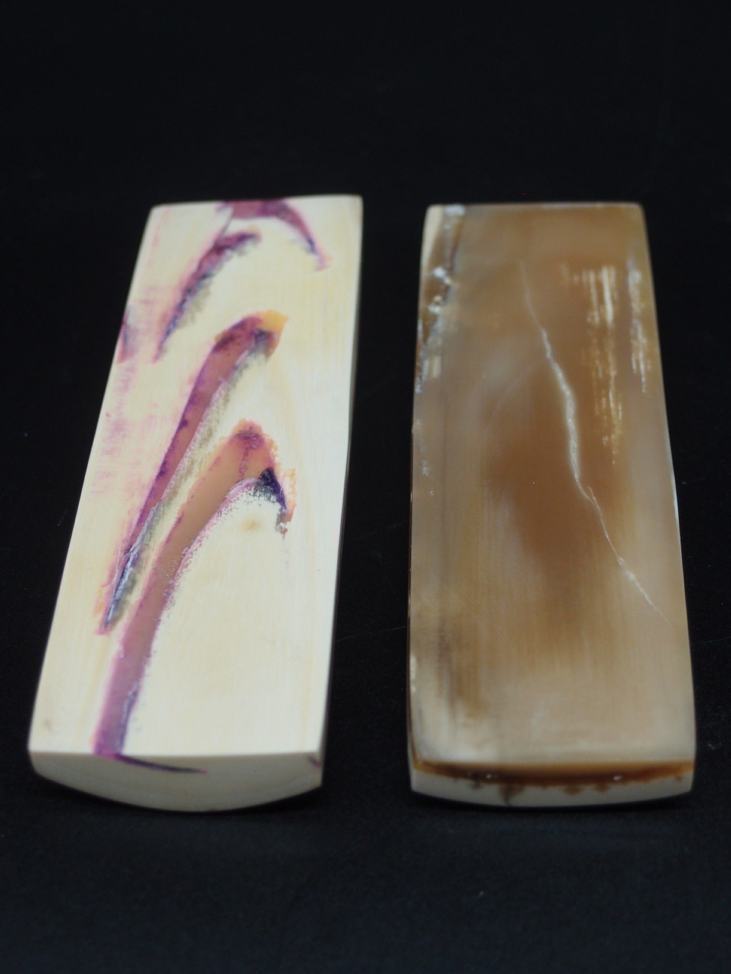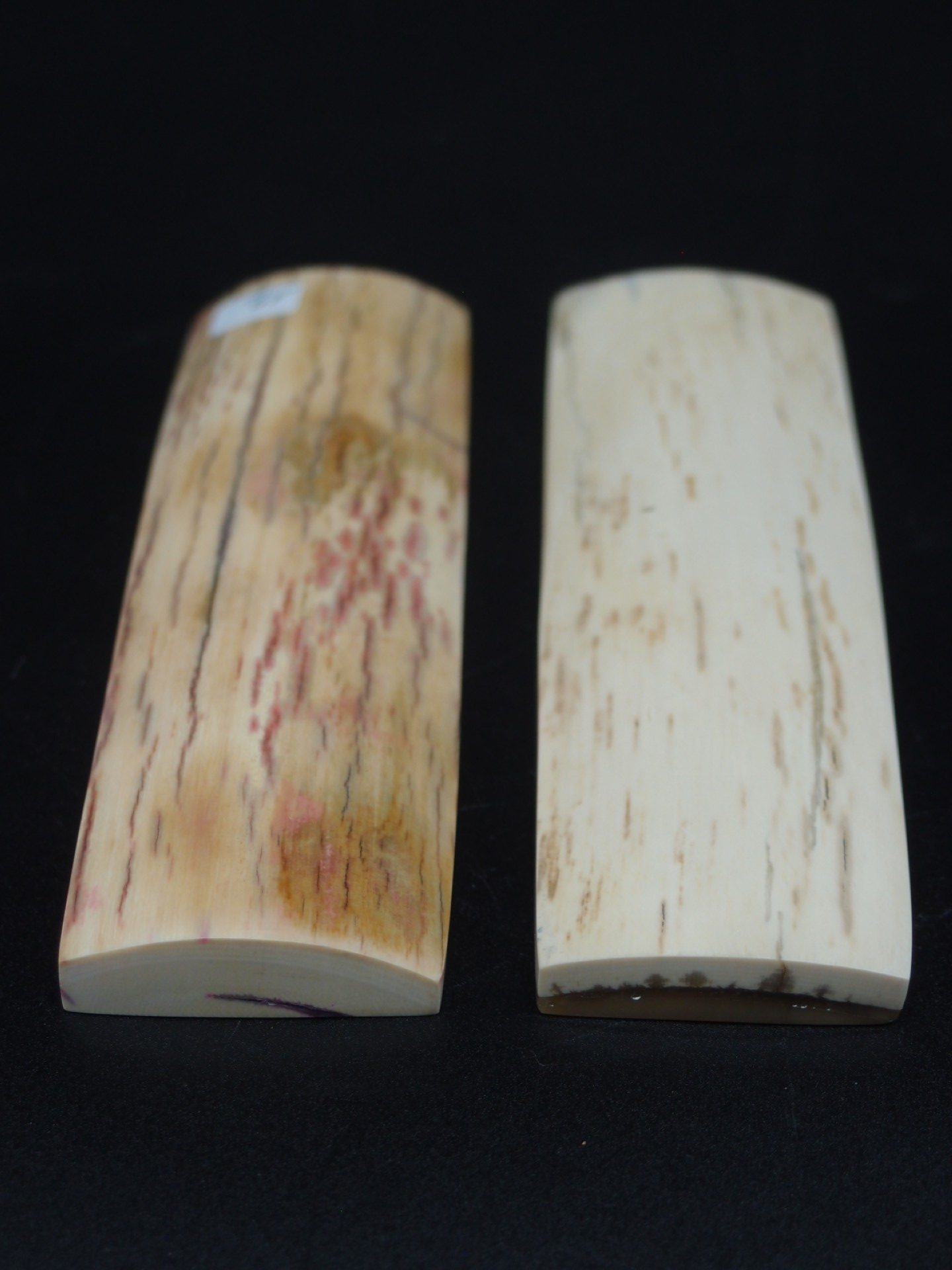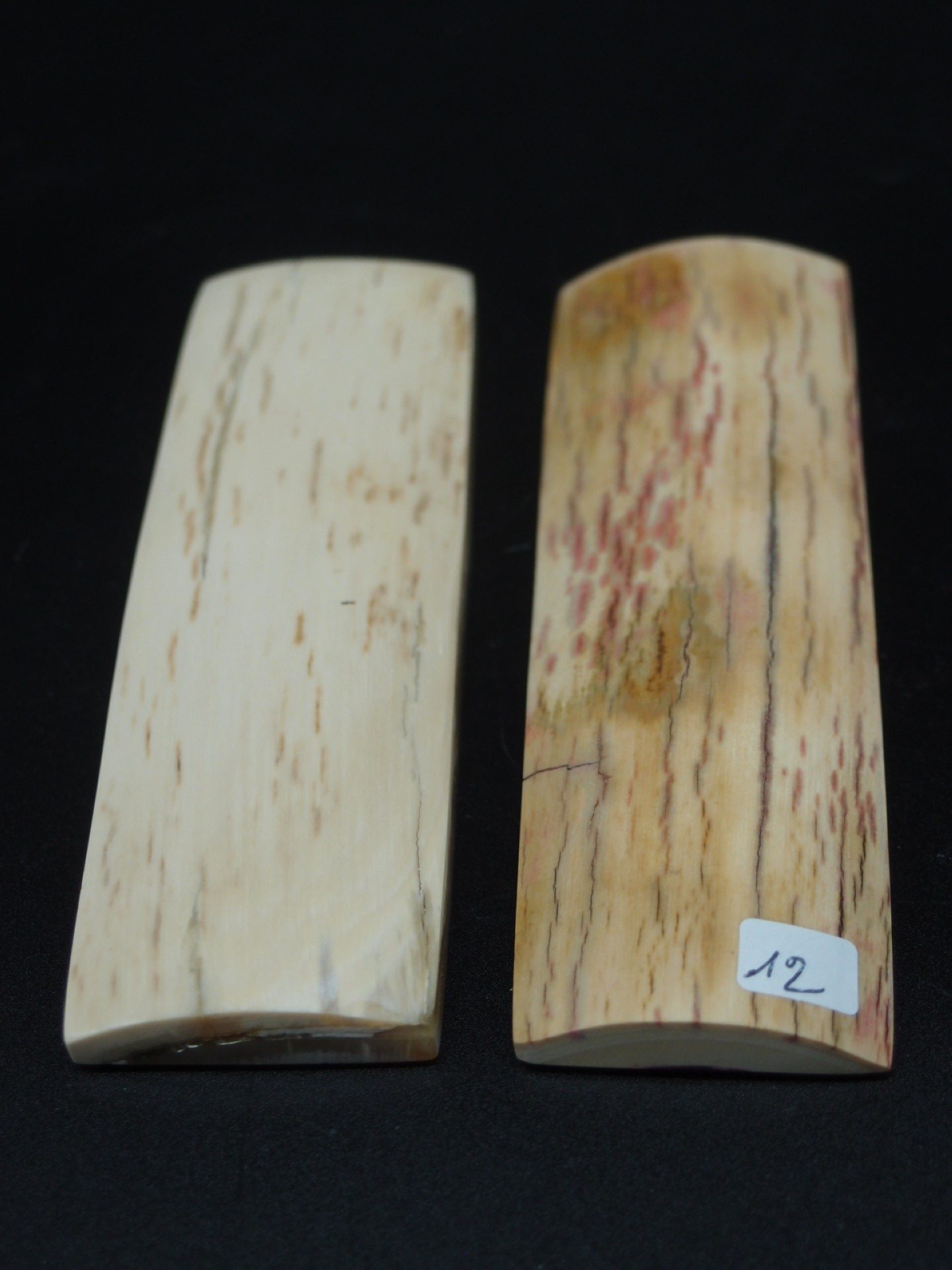 Paire d’écailles de mammouth stabilisées alliant un brun profond à des rayures rouges expressives. Parfaites pour les créations audacieuses nécessitant caractère et originalité. Matériau d’exception offrant un contraste saisissant entre chaleur et intensité.