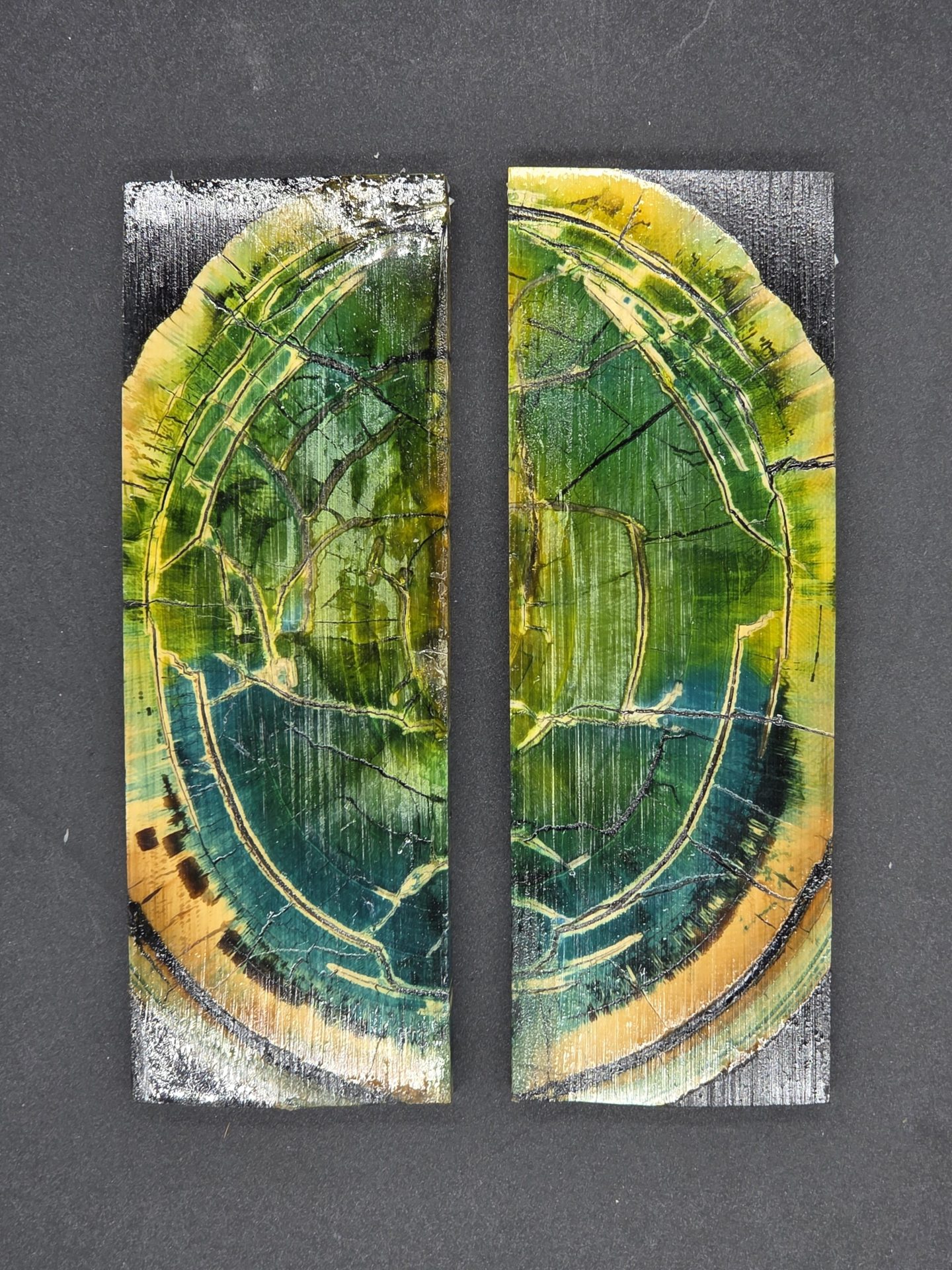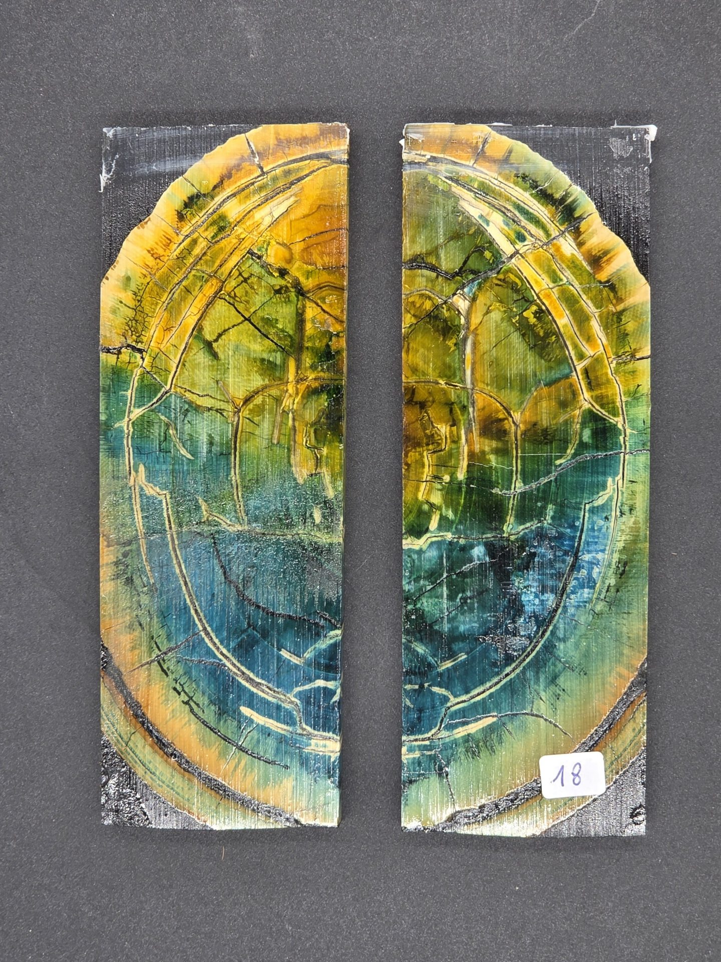 Issue de l’intérieur des défenses fossilisées de mammouth, cette tranche est rigoureusement sélectionnée et stabilisée pour garantir sa robustesse et sa durabilité.