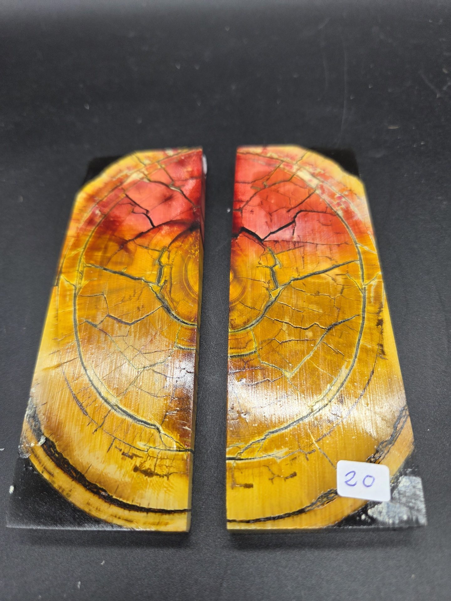 Issue de l’intérieur des défenses fossilisées de mammouth, cette tranche est rigoureusement sélectionnée et stabilisée pour garantir sa robustesse et sa durabilité.